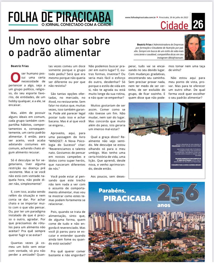 *Texto originalmente publicado no Jornal Folha de Piracicaba, no dia 30 de julho de 2023.