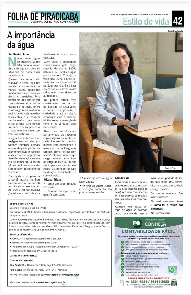 Na prática clínica, vejo diariamente como a baixa ingestão de água afeta o humor, a disposição, a saciedade e até a relação emocional com a comida. Muitas vezes, a sensação de fome é, na verdade, sede mascarada.