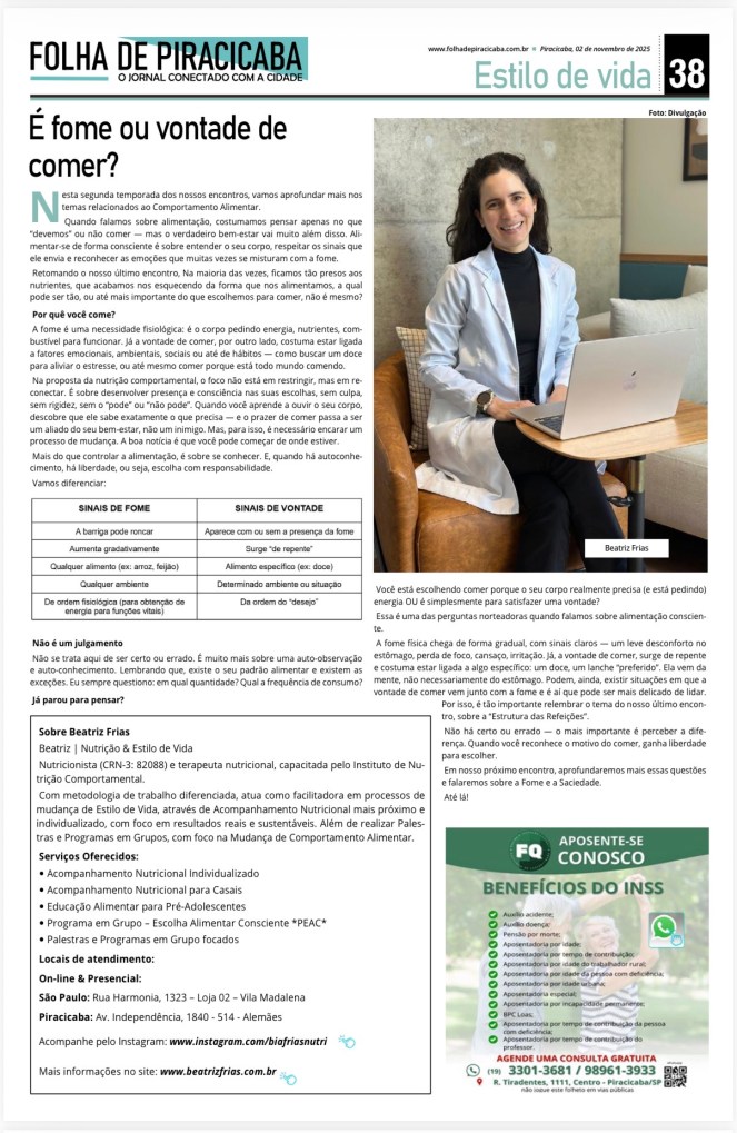 Quando falamos sobre alimentação, costumamos pensar apenas no que “devemos” ou não comer — mas o verdadeiro bem-estar vai muito além disso. Alimentar-se de forma consciente é sobre entender o seu corpo, respeitar os sinais que ele envia e reconhecer as emoções que muitas vezes se misturam com a fome.